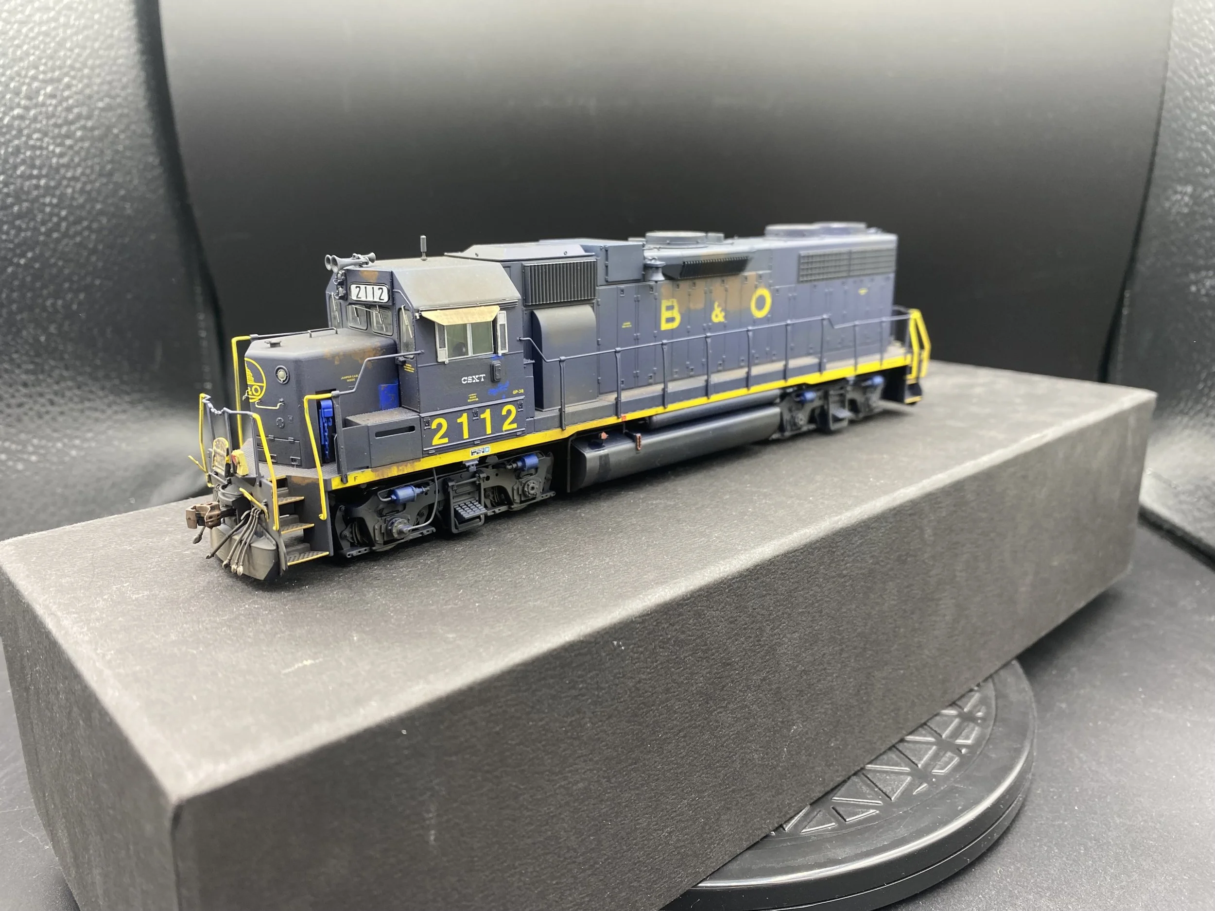CSX 2112modified paint, custom detailed and weathered.CSX (ex B&O) GP38 Model is corrected for a Late 80’s appearance features correct plow, pilot details, dynamic brake, and much moreRapidoTrains model